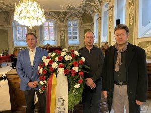 An der heutigen, ausgesprochen würdigen und respektvollen Gedenkfeier des Volksbundes Deutsche Kriegsgräberfürsorge e.V. Kreisverband Lübeck im Audienzsaal im Lübecker Rathaus nahmen aus unserer Fraktion unter anderem die Fraktionsmitglieder der Lübecker Bürgerschaft (v.l.n.r.) Markus Stappen, Dirk Groß (Fraktionsvorsitzender) und Oliver Marten teil.